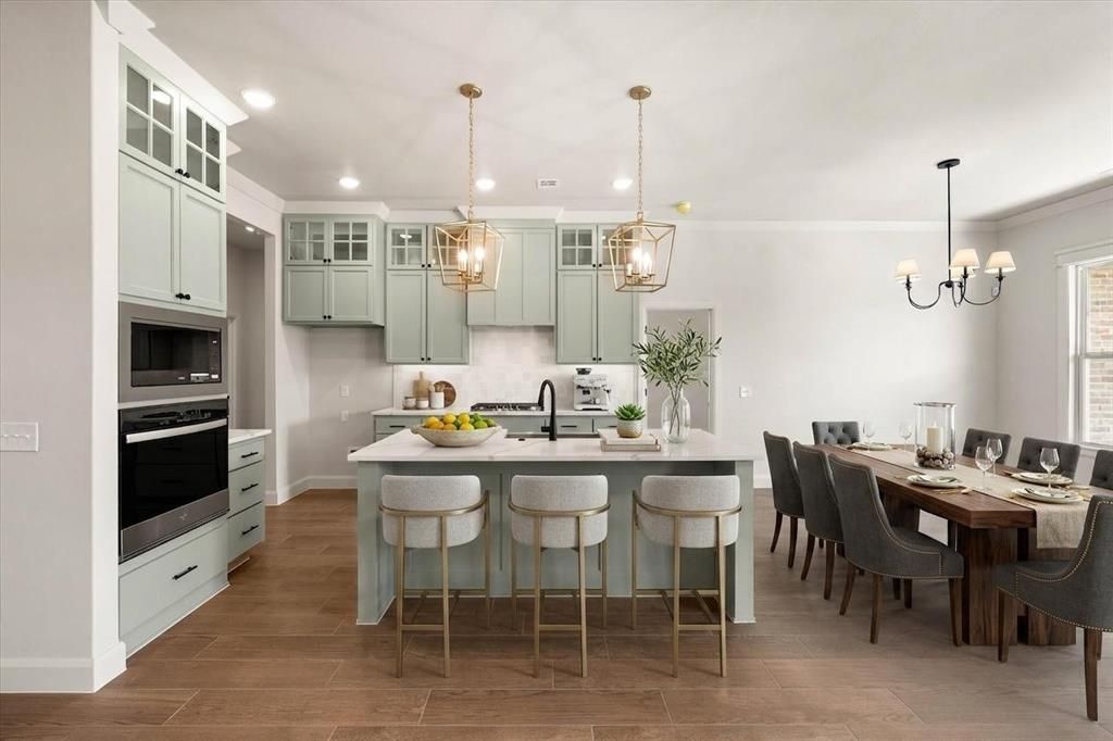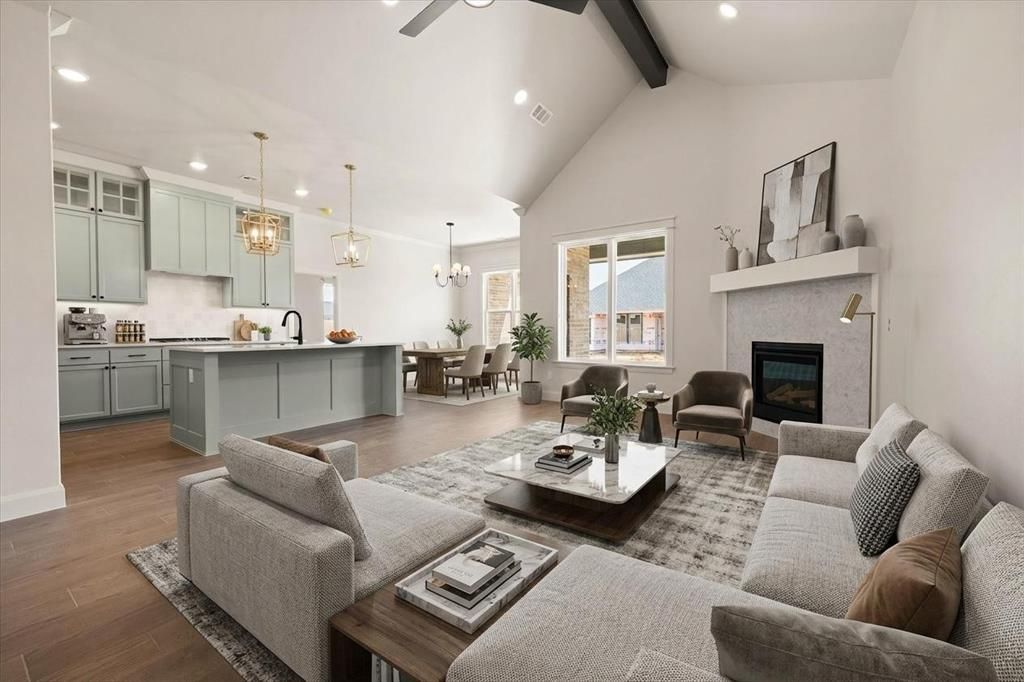 Where modern design meets everyday functionality, this exceptional home offers a refined blend of style, comfort, and thoughtful craftsmanship in Mustang Park at 5104 Misty Wood Lane. Built by a premier builder celebrated for distinctive designer finishes, the residence welcomes you with a striking open layout that feels both spacious and inviting. The expansive living room is anchored by a vaulted ceiling and a dramatic corner fireplace, creating a stunning focal point that seamlessly connects to the gourmet kitchen. Here, culinary enthusiasts will appreciate the quartz countertops, gas range, walk-in pantry, and generous island, perfect for everything from meal prep to casual gatherings with friends and family. The adjacent dining area, accented by modern lighting and ample natural light, sets the stage for memorable meals and effortless entertaining. The thoughtful split floor plan enhances privacy, with secondary bedrooms and a stylish full bath situated on one side of the home, while the owner's suite occupies its own serene wing. The primary retreat is a true sanctuary, offering a spa-inspired bath with a relaxing soaking tub, quartz countertops, dual sinks, and a spacious walk-in shower. Tile flooring extends throughout the main living areas, providing both beauty and durability. Additional features include a convenient powder bath for guests, a custom mud bench, extra cabinetry in the laundry room, and premium touches such as under-cabinet kitchen lighting, a sprinkler system, tankless water heater, and weatherproof outdoor outlets. Residents enjoy access to community amenities including a neighborhood pool and playground, all within the sought-after Mustang School District. After a warm summer day, unwind on the covered back patio, perfectly designed for outdoor dining, relaxation, and entertaining. This home embodies modern luxury with practical livability. Love the virtually staged photos. Welcome home.